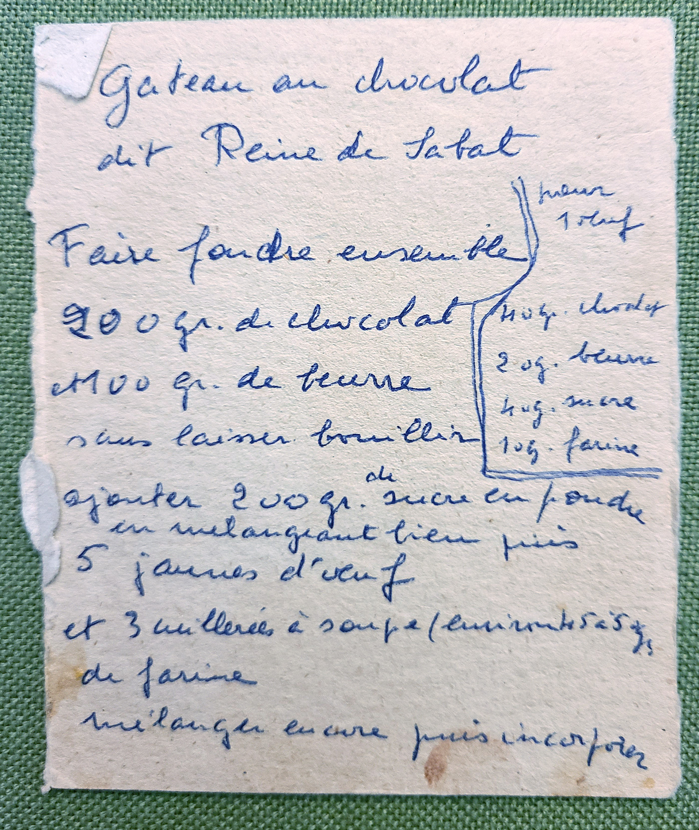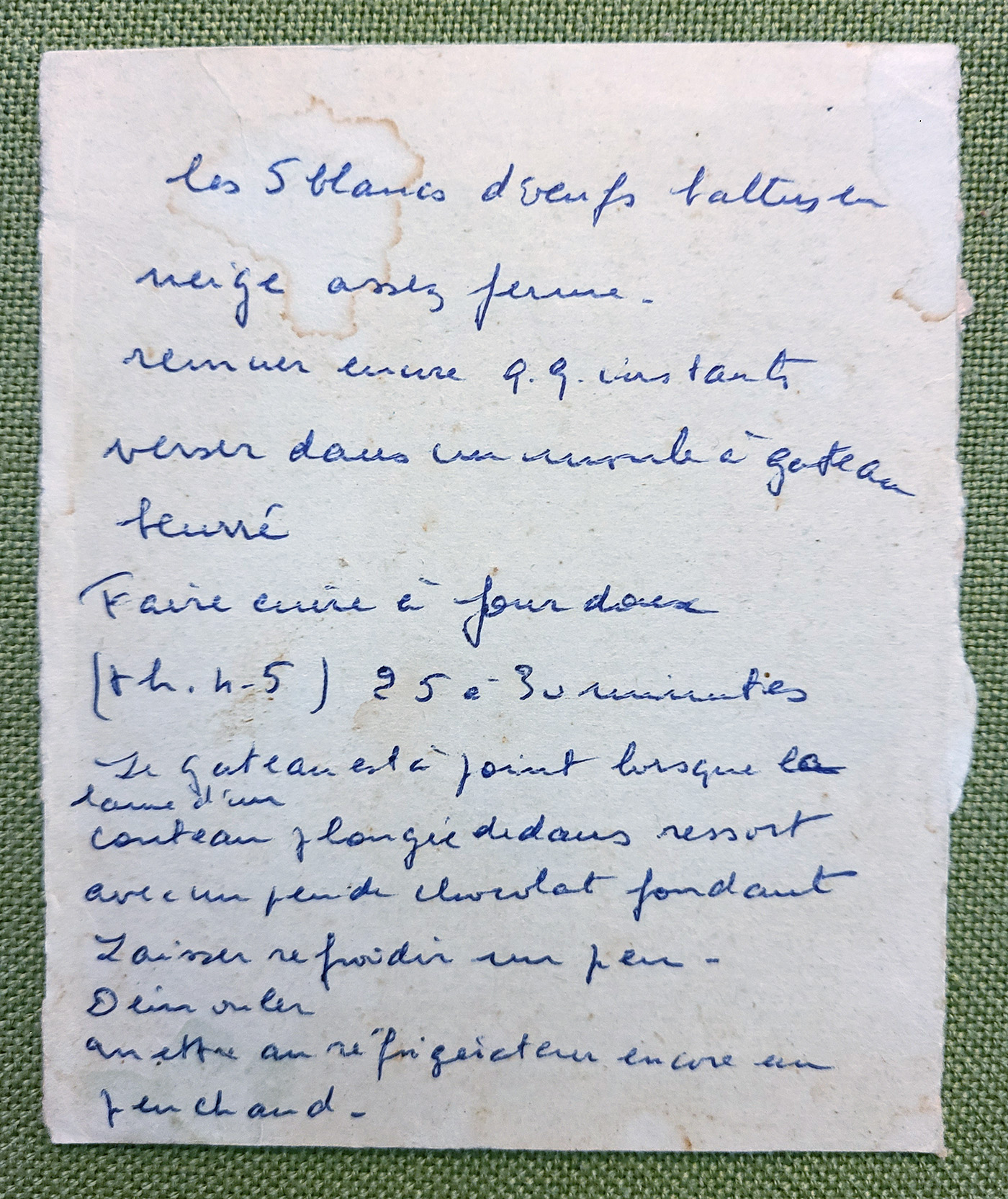 Faire cuire à feu doux (th 4-5) 25 à 30 minutes. Le gâteau est à point quand la lame d’un couteau ressort avec un peu de chocolat fondant.